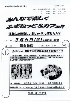 【回覧板・3/6開催】みんなで楽しく!ふまねっと運動&カフェのご案内