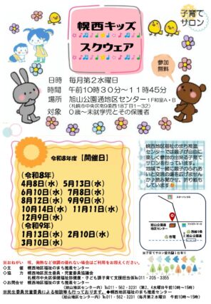 子育てサロン〈幌西キッズスクウェア〉の令和8年度の開催予定日のお知らせ
