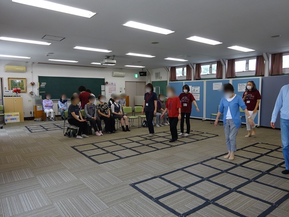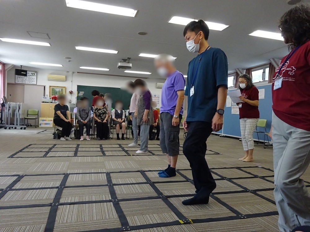 参加されたみなさんは、リズムに乗って網を踏まないよう、笑顔でふまねっと運動を楽しんでいました。