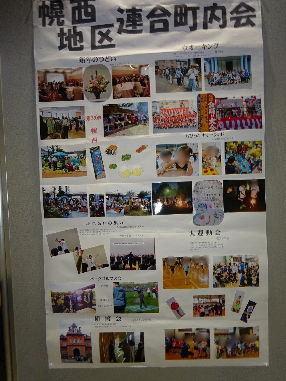 また、小ホールでは、各地区の活動を紹介する写真展が開催され、幌西地区の写真も展示いたしました。