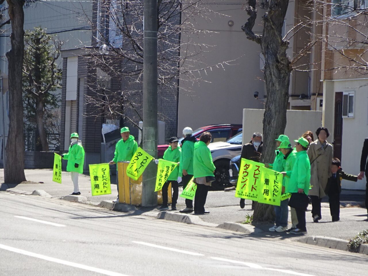 4月8日水曜日午前11時45分から、中央区「春の交通安全街頭啓発」の取組として、幌西地区でも幌西小学校の入学式に合わせて学校近隣において特別啓発を実施しました。