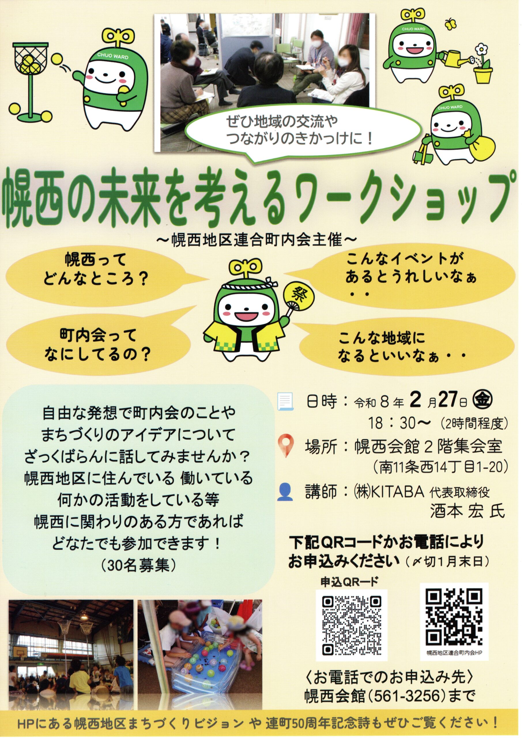 申し込み締め切り 2月6日(金)まで - 幌西の未来を考えるワークショップ 2月27日(金)