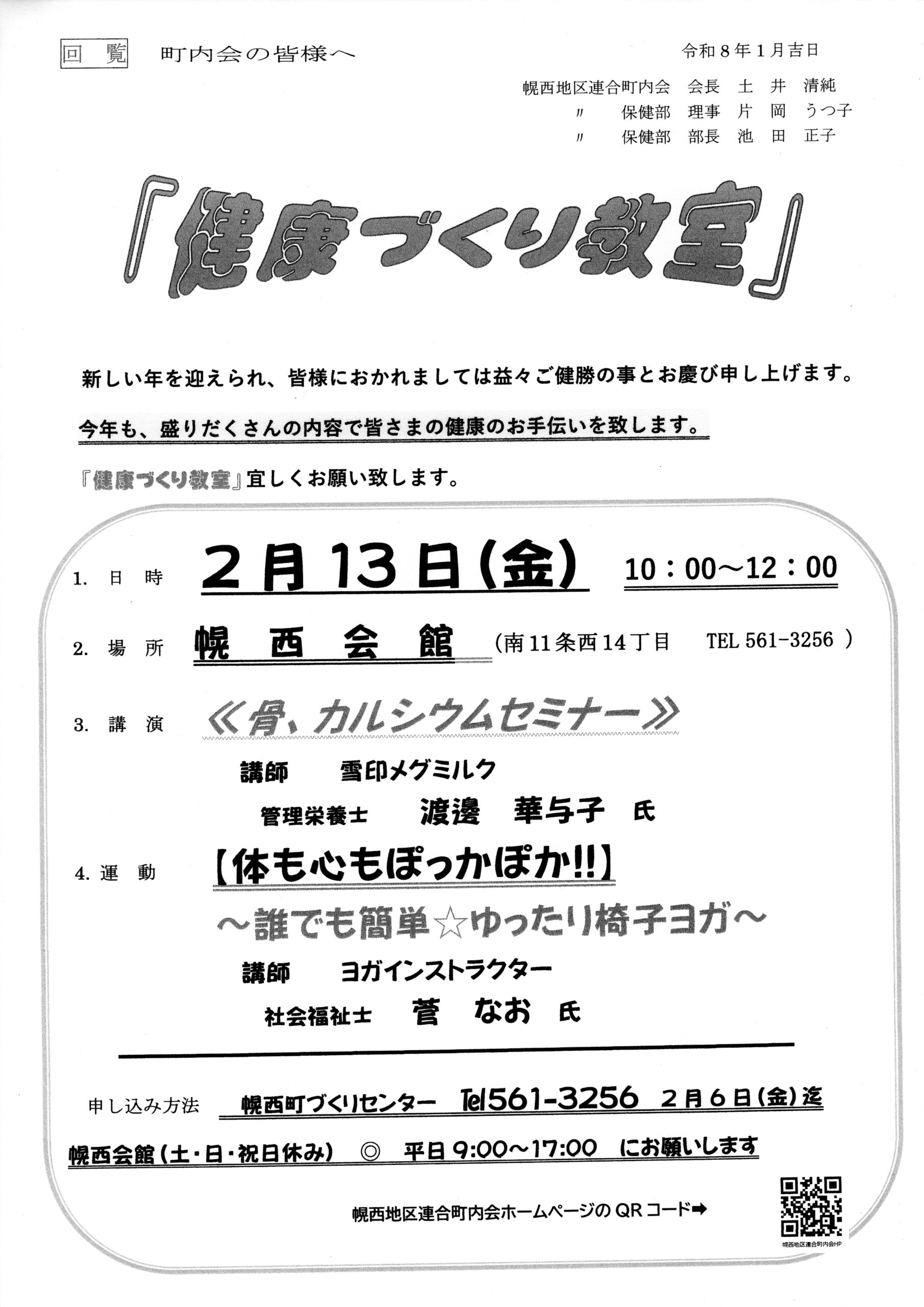 申し込み締め切り 12月25日(木)まで - 健康づくり教室 2月13日(金)