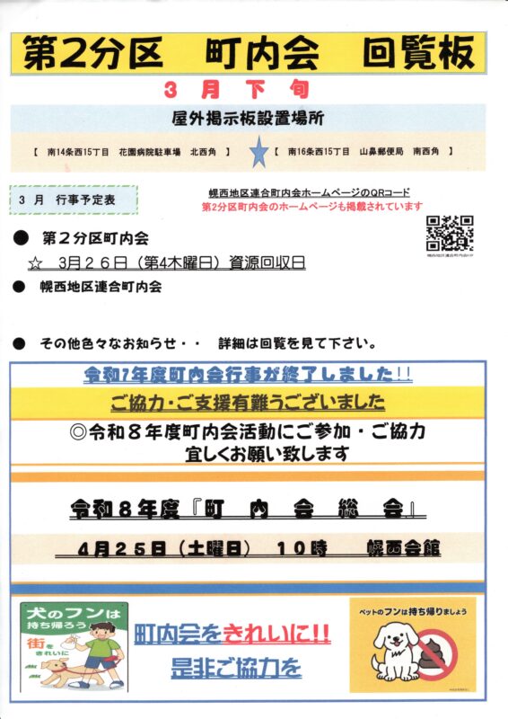 【幌西地区連合町内会の回覧】