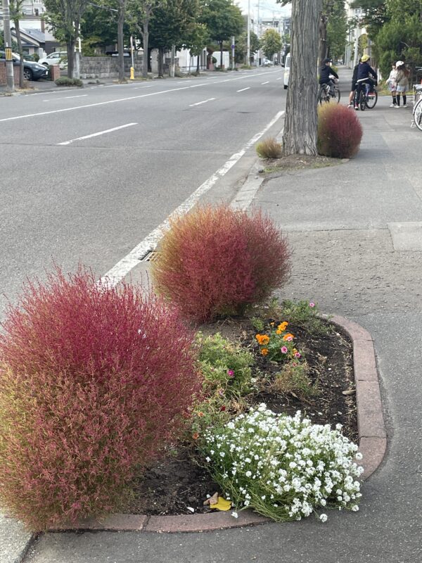 前回も街路のコキアを紹介しましたが、赤く色づきました。