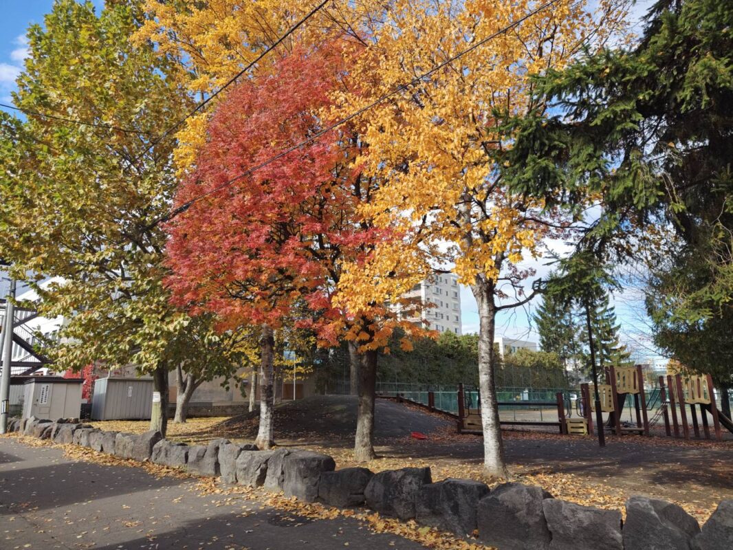 公園内も枯葉の絨毯になっています。皆さん、頑張りましょう。