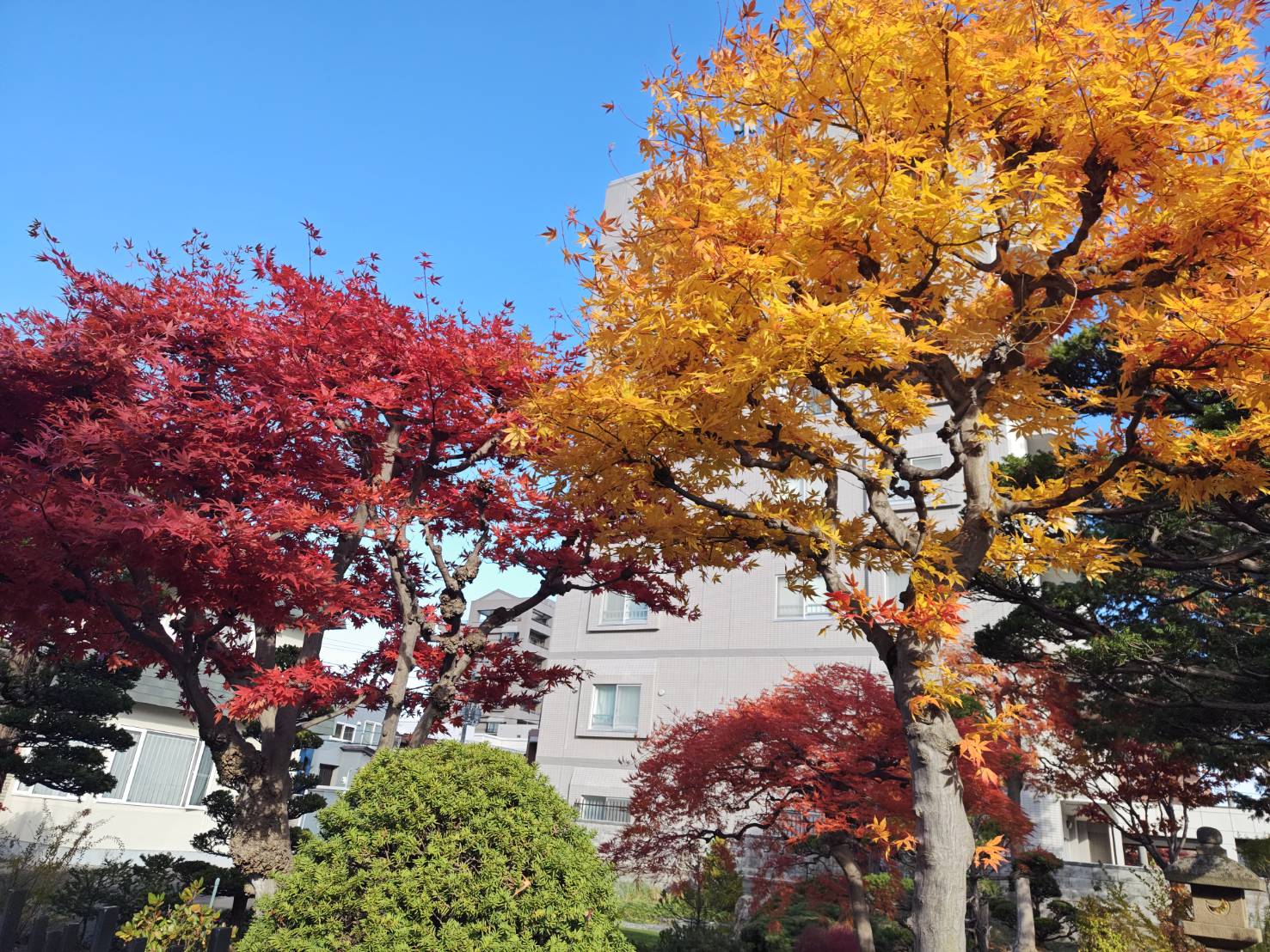 秋深し 町内でも紅葉がピークを迎えています。11月8日に落ち葉拾いをするおおたに