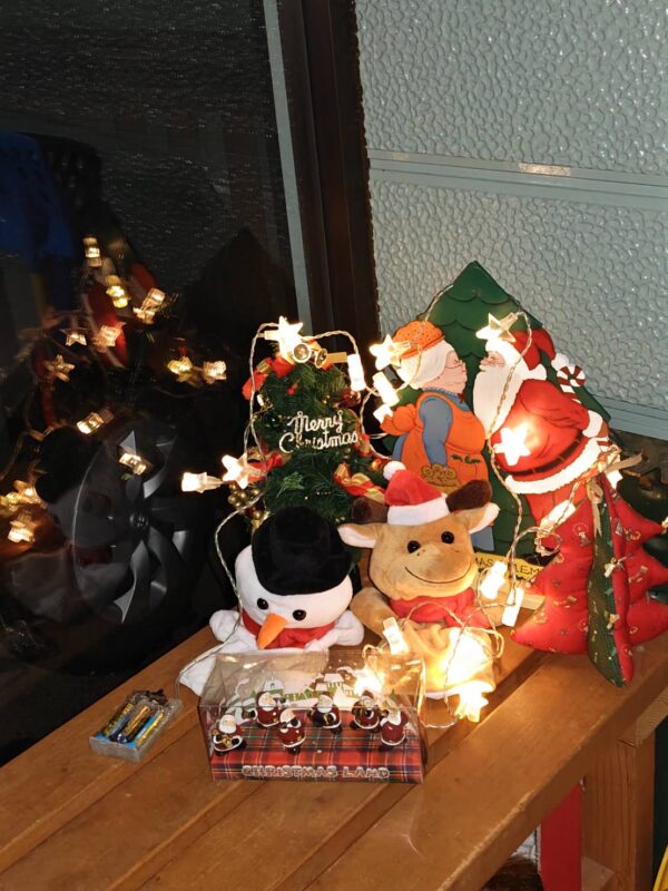 作品を各家庭に飾っています。住宅やマンションの窓には、大小のイルミネーションが