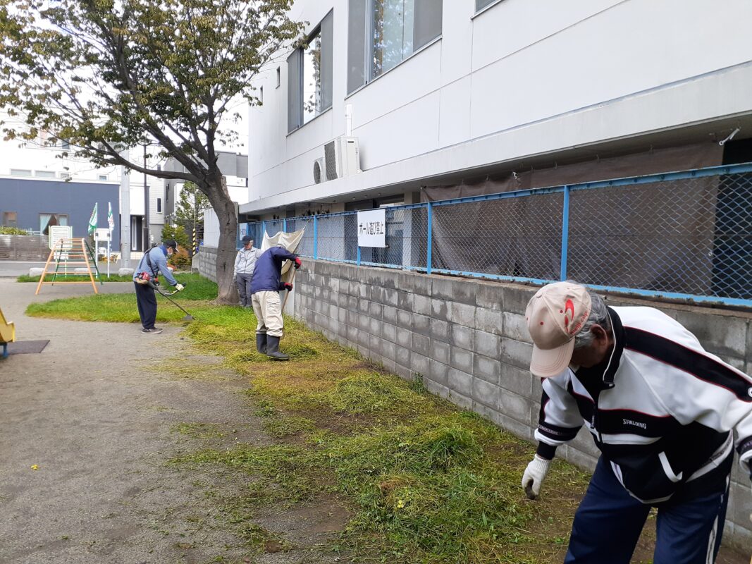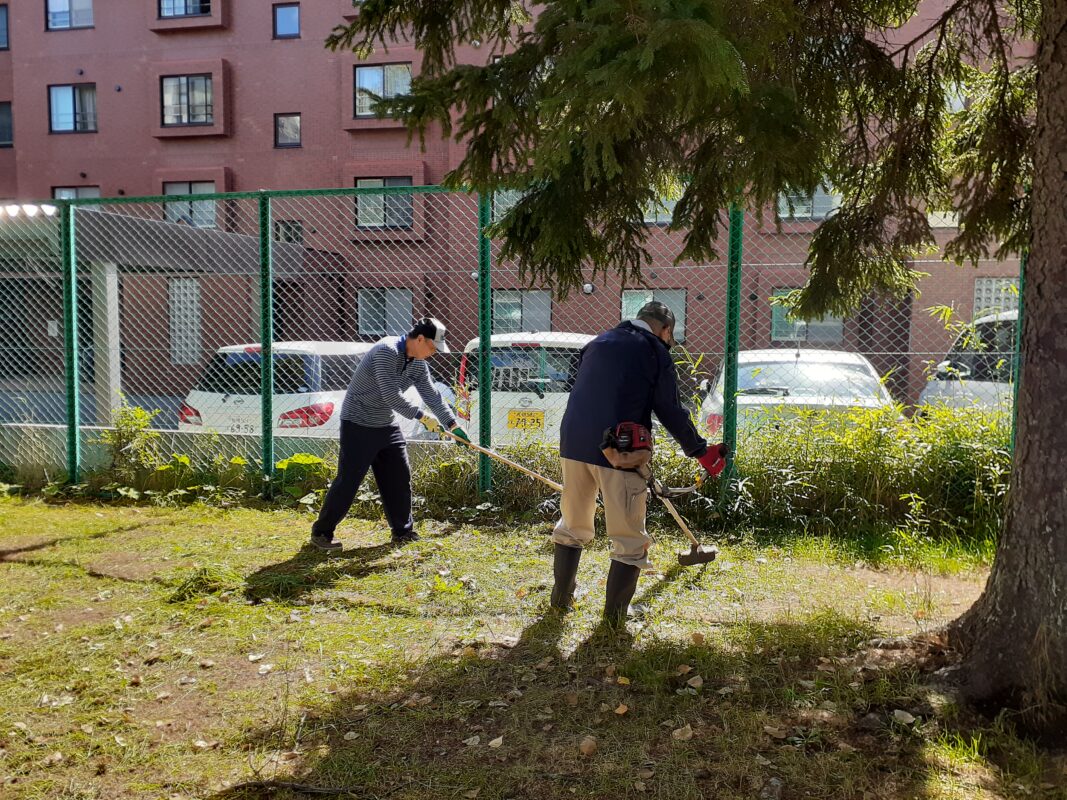 9月26日(金曜日)10時から第8分区町内会のボランティアグループ「ふれあいクラブ」の有志の皆さんが草刈機を使い町内会にある2ヶ所の公園の草刈りを実施しました。