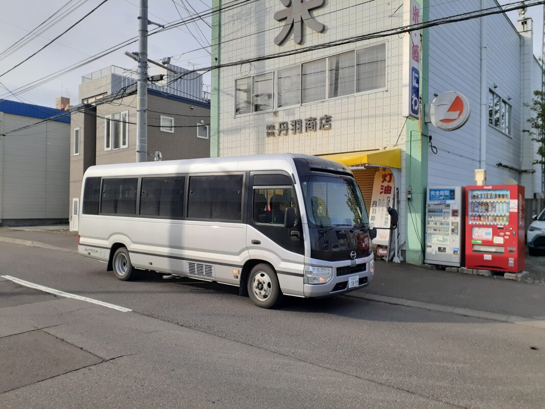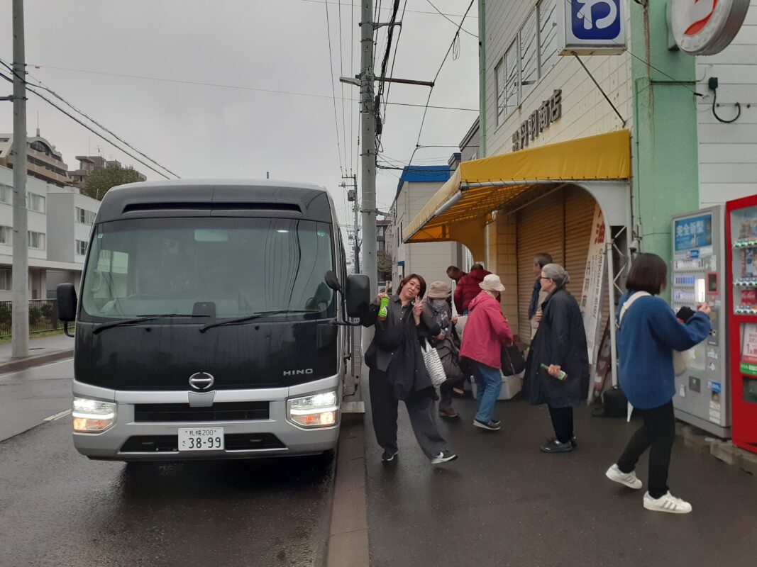 14:30「ゆーりん館」を後にし札幌へ、途中江別SAで休憩し、16:00無事丹羽商店前に到着!