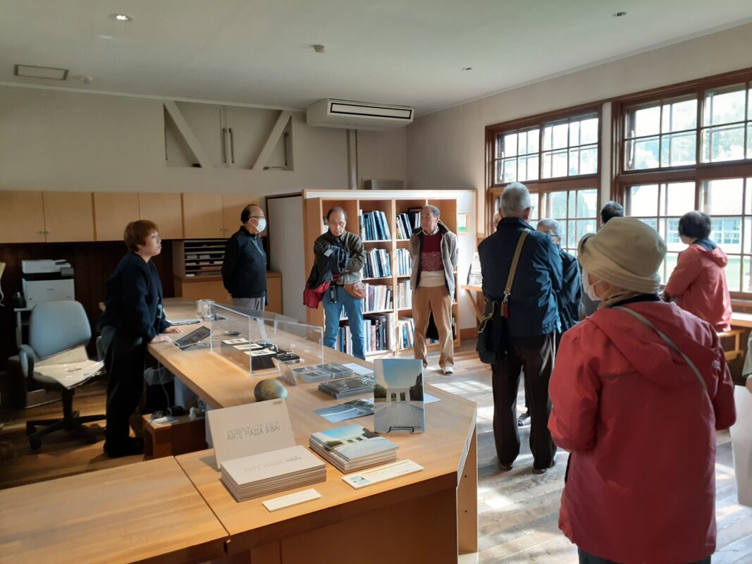 美術館見学を前に、幹事から「実は9月に美術館周辺にクマが出没し、1週間休館していたこともあることから今回は外の見学は中止します。」との説明があり、館内のみとなりました。(なお、美術館に行くまでの間、外の彫刻等は多少見ることができました。)