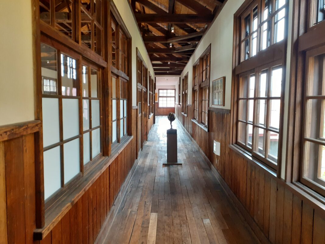 美術館の見学は、最初にインフォメーション窓口で美術館の担当者から説明を受けた後、木造校舎の教室内に展示された彫刻等を見学しました。