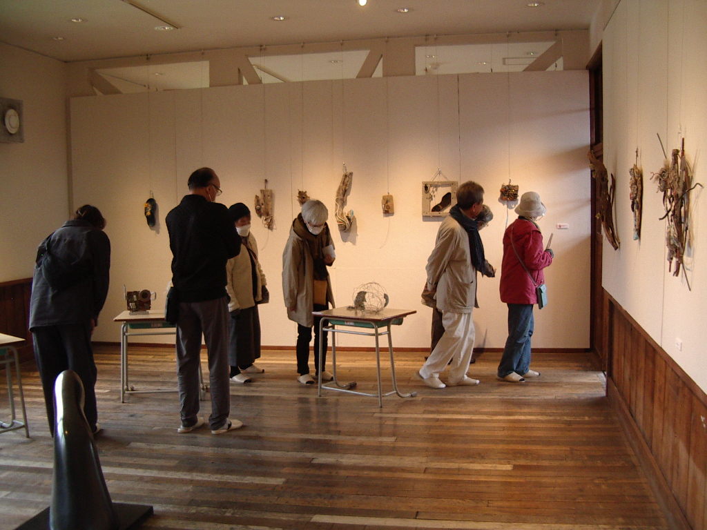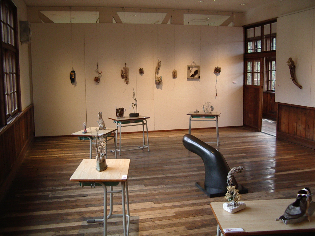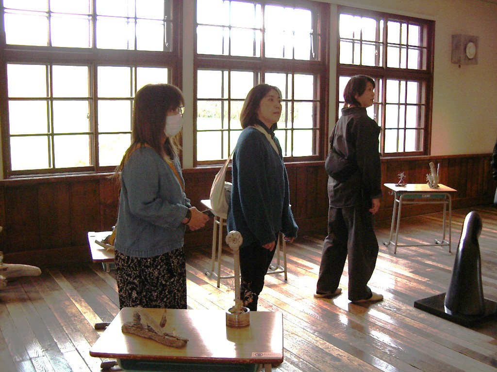 美術館の見学は、最初にインフォメーション窓口で美術館の担当者から説明を受けた後、木造校舎の教室内に展示された彫刻等を見学しました。