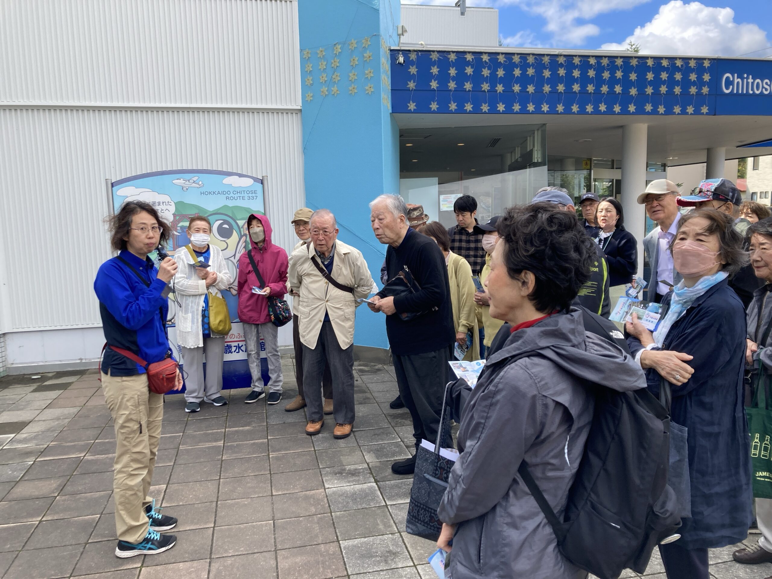 まず、一行は千歳の「サケのふるさと千歳水族館」でシーズンを迎えたサケの生態を観察。隣接する「道の駅サーモンパーク千歳」で買い物を楽しんだ後、キリンビール工場のレストラン「ハウベ」でジンギスカン食べ放題・生ビール飲み放題に舌鼓を打ちました。その後は恵庭市の「道の駅花ロードえにわ」を経由して、最後は「えこりん村とまとの森」で世界最大のとまとの木を楽しんでいただきました。