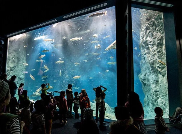 淡水魚の大水槽。大きなチョウザメもいます。
